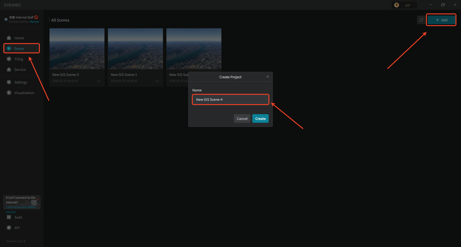1. First, click the “Add” button in Scene Editor to create a new scene.