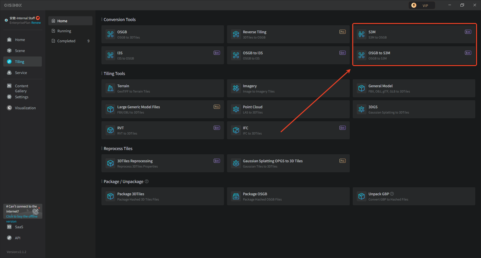 Open the GISBox software, select “S3M” in the “Tiling” section, and a “New Tiling Task” window will pop up.